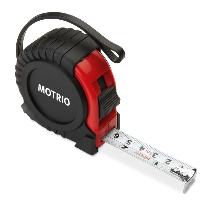 Mètre 5 m en ABS. Avec dragonne et clip métallique argenté brillant. (CM/INCH)